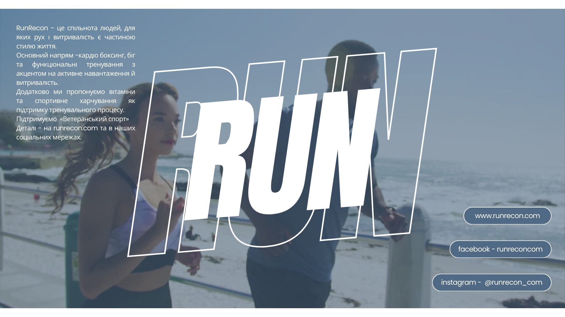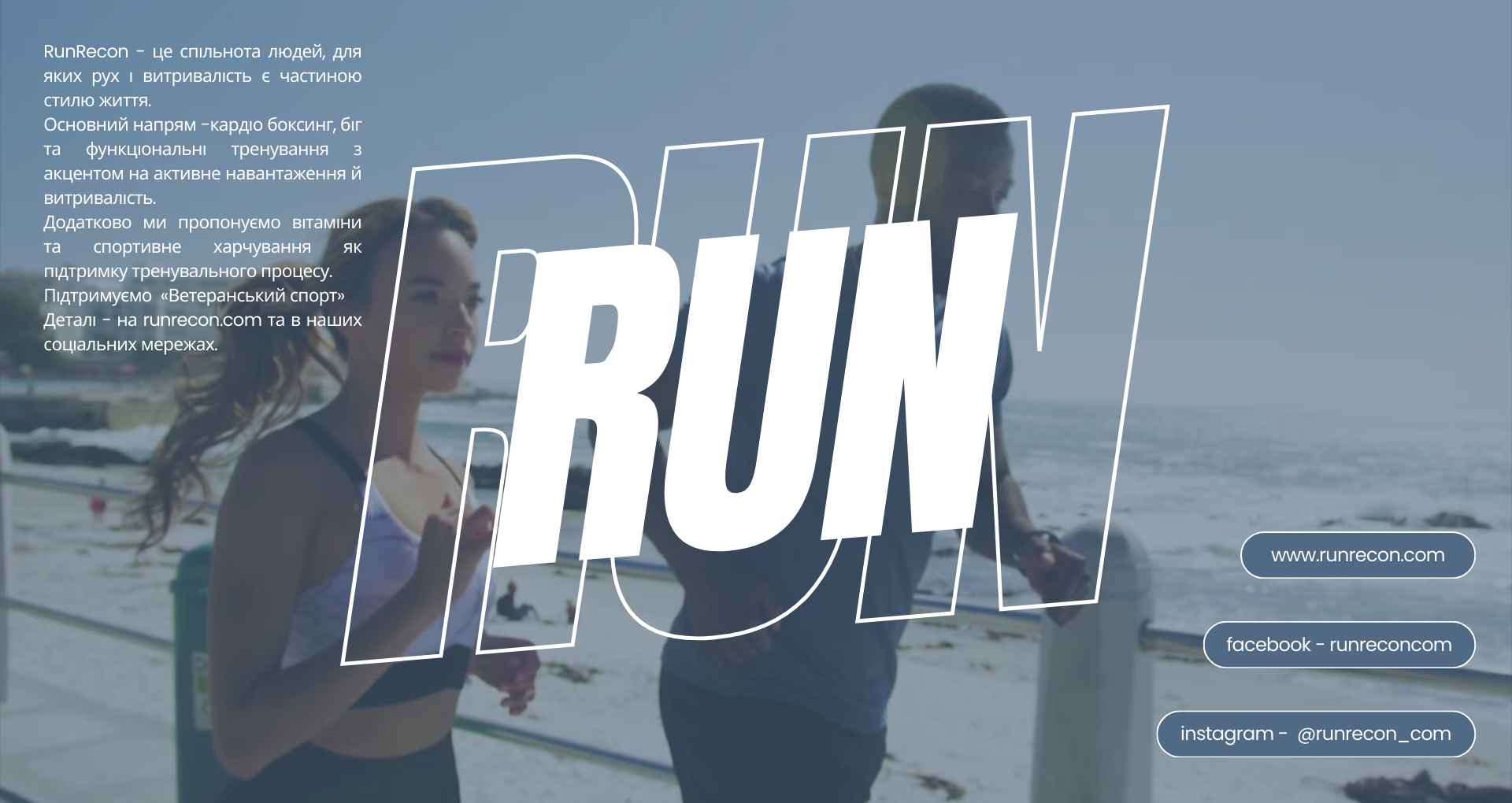 RunRecon — це об’єднання людей, які цінують активний спосіб життя, незалежно від віку. Наш клуб поєднує тих, хто любить спортивну ходьбу та біг. Ми переконані: регулярний рух зміцнює тіло, покращує витривалість і допомагає отримувати задоволення від кожного кроку.