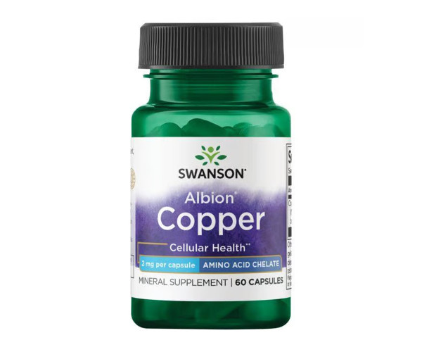 Мідь Swanson Albion® – це високозасвоювана форма цього мікроелементу, яка використовується організмом у багатьох ферментативних процесах, включаючи вироблення гемоглобіну – білка, який сприяє оксигенації тканин і, таким чином, енергії по всьому тілу, – а також скорочення серцевого м’яза та функцію кровоносних судин. Вона необхідна для здоров’я клітинних мембран і сполучних тканин, функції нервової системи та росту кісток. Як і інші хелатні мінерали Swanson Albion, наші мідні капсули містять запатентовану гліцинатну хелатну форму Albion для забезпечення максимального засвоєння.