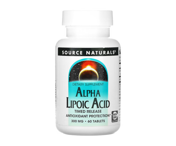 Альфа-ліпоєва кислота — потужний жиро- та водорозчинний антиоксидант. Він безпосередньо переробляє вітамін C і опосередковано — вітамін E, забезпечуючи додатковий антиоксидантний захист. Він також є важливим компонентом у процесі виробництва енергії в клітинах. Альфа-ліпоєва кислота може підтримувати нормальну реакцію на інсулін і здоровий рівень цукру в крові, який уже перебуває в межах норми. Альфа-ліпоєва кислота з тимчасовим вивільненням від Source Naturals розроблена для поступового вивільнення протягом дня.