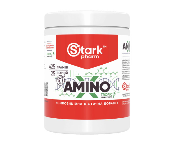 Харчова добавка Stark Pharm – Stark Amino-X містить потужний комплекс амінокислот, що сприяє покращенню працездатності, підвищенню витривалості та прискоренню відновлення після активних фізичних навантажень.