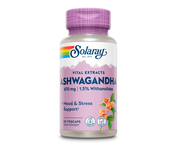 Solaray Ashwagandha Root Extract 470mg - це високоякісна добавка, виготовлена з кореня ашваганди, відомої своєю здатністю підтримувати загальний тонус організму та емоційний баланс.