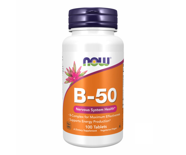B-50 Tabs забезпечує повний набір вітамінів групи В, а також холін та інозит. Ці вітаміни сприяють виробленню енергії, підтримують здоровий метаболізм гомоцистеїну та зміцнюють здоров’я нервової системи.* Вітаміни групи B є водорозчинними, і, за винятком B-12, мають обмежене зберігання в організмі, тому потребують щоденного поповнення. Хоча B-12 зберігається в печінці, харчові джерела лише тваринного походження (м’ясо та молочні продукти), і добавки з B-12 можуть бути особливо важливими для вегетаріанців.