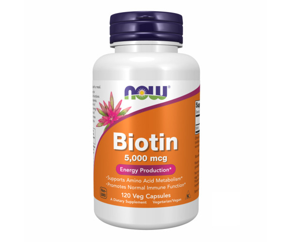 Now Foods Biotin 5000 mcg – водорозчинний вітамін, також відомий як В7 або вітамін Н. Діє як ключовий елемент, що регулює глюконеогенез, синтез жирних кислот та метаболізм певних амінокислот. Як і всі вітаміни групи В, він допомагає організму перетворити вуглеводи з їжі в глюкозу. Ці функції роблять біотин важливою частиною створення енергії, необхідної для організму. Окрім виконання своєї функції у виробництві енергії, біотин посилює синтез деяких білків. Серед жінок відомий як вітамін «краси», оскільки головним чином позитивно впливає на шкіру, нігті та волосся. Біотин, як стверджується, сприяє росту волосся, але докази слабкі. Однак часто його дефіцит пов'язаний із випаданням волосся, і ті, хто насправді мають дефіцит, можуть отримати користь від доповнення. Також біотин дуже важливий для людей, які страждають на цукровий діабет 2 типу, оскільки стабілізує рівень глюкози в крові. Добавки біотину є чудовою підтримкою багатьох процесів, що відбуваються в організмі людини, серед яких, функціонування нервової системи, що покращує емоційний стан людини, знижує стрес і тривожність.