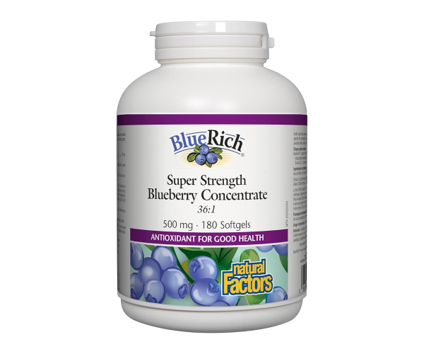 • Концентрат чорниці Natural Factors BlueRich 36:1 містить повний спектр поживних речовин чорниці в кожній м’якій капсулі (500 мг), що еквівалентно приблизно 1/8 склянки свіжої чорниці з 2,5–5% антоціанів для сильного антиоксидантного захисту.