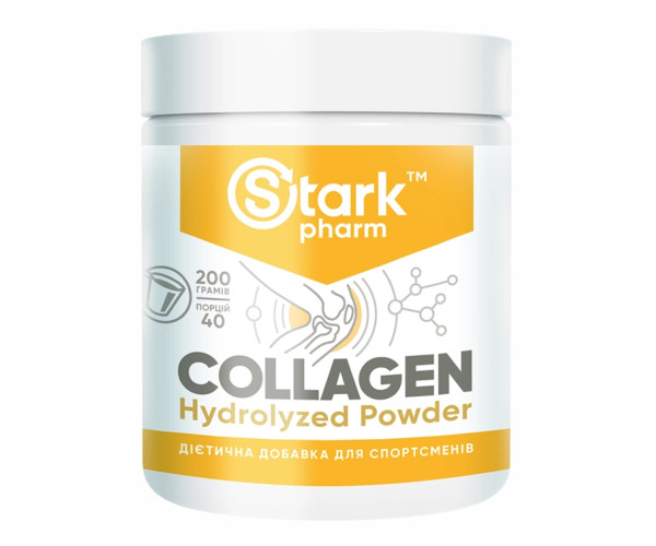 Препарат для зміцнення зв'язок, суглобів та кісток. У ході тренувань, а також з віком хрящові тканини мають особливість зношуватися, у зв'язку з цим виникають різноманітні хвороби. Колаген – фібрилярний білок, що забезпечує міцність та еластичність сполучної тканини, головна речовина для нормального функціонування опорно-рухового апарату. Колаген – це білкова речовина, яка не належить до продуктів спортивного харчування молочного та сироваткового походження. Амінокислотний спектр гідролізату колагену має 20 одиниць, амінокислота є структурною одиницею колагену гідролізату. Вченим компанії Stark Pharm (Старк Фарм) вдалося підібрати добавку з набором амінокислот, який найбільше підходить для відновлення структури колагенів у сполучній тканині людини.