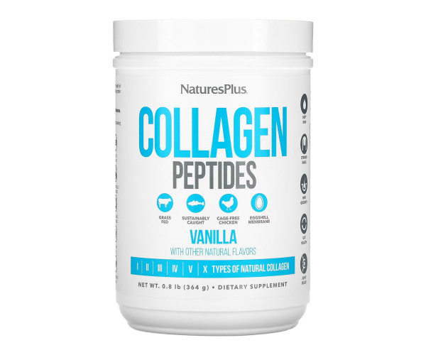 Виглядайте та почувайтеся якнайкраще з колагеновими пептидами Natures Plus VANILLA. Зміцніть здоров’я свого волосся, шкіри, нігтів, суглобів, імунної системи та багато іншого за допомогою потужності білкових пептидів колагену в чудовому смаку ванілі, який вам сподобається!