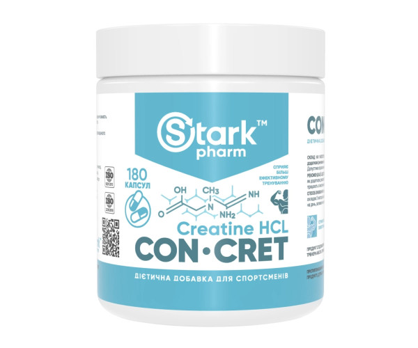 Креатин гидрохлорид Stark CON-CRET Creatine Big Caps 750 мг Креатин или метил-гуанидо-уксусная кислота - это азотсодержащая карбоновая кислота, участвующая в энергетическом обмене в мышечных и нервных клетках. В настоящее время существует множество форм креатина, такие как креатин малат, креатин фосфат, креалкалин, эфир креатин этил, креатин моногидрат и другие. Наиболее широко распространенной и известной из них является моногидрат креатина. Креатин гидрохлорид не требует загрузки, хорошо растворяется в воде, не задерживает воду, не имеет побочных эффектов. По сравнению с моногидратом креатин, креатин гидрохлорид гораздо эффективнее его во всех нижеследующих отношениях: Молекулярная стойкость; Растворимость (полностью растворяется в воде!); скорость насыщения плазмы крови и мышечных клеток; Практически не превращается в креатинин; Согласно исследованиям, проведенным компанией Promera Health, креатин гидрохлорид усваивается в 59 раз лучше, чем креатин моногидрат и в 6 раз лучше креатина эфира! Такая разница в степени усвоения позволяет принимать гидрохлорид креатин микродозами в зависимости от веса тела. Всего 1500 мг на 90 кг массы тела в дни отдыха и легких тренировок. и 3000 мг на 45 кг в дни тяжелых тренировок; Креатин гидрохлорид очень концентрированный, очень чистый и его микродозы гарантируют, что вы увеличиваете силу и строите мышцы. Несмотря на очень мощное анаболическое действие, применение креатина гидрохлорида не вызывает каких-либо побочных эффектов! Полностью отсутствуют побочные эффекты, отмечаемые при приеме моногидрата как: задержка воды, расстройства пищеварения, диарея, тошнота; Помимо свойственного креатина эффекта, гидрохлорид включается в энергообмен через всего 30-45 минут с момента приема и оказывает выраженное предтренировочное действие, значительно повышая интенсивность ваших тренировок. Рекомендации (в расчете на человека весом 80 - 100 кг): В дни легких тренировок 2 капсулы по 750 мг в час до тренировки, запивая большим количеством воды (200-400 мл). В дни тяжелых тренировок 4 капсулы в час до тренировки, запивая большим количеством воды (300-400 мл). В дни без тренировки 1-2 капсулы за 30 минут до еды, запивая большим количеством воды. Наиболее эффективная порция креатина не четко определена, для каждого вида спорта и интенсивности тренировок расход креатина имеет разные показатели. Подбирается экспериментально.