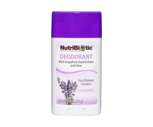 Дезодорант із лавандою NutriBiotic® — ніжний дезодорант довготривалої дії, що містить гамамеліс, екстракт насіння грейпфрута, алое й ефірні олії.