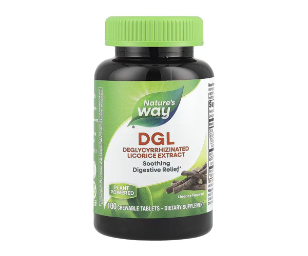 Nature's Way DGL — це жувальні таблетки на основі дегліциризинізованої лакриці (солодкового кореня), спеціально розроблені для підтримки здоров’я шлунково-кишкового тракту та зменшення дискомфорту у шлунку.