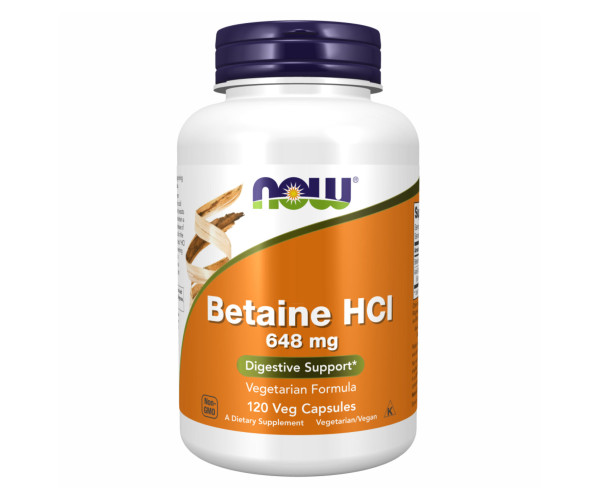 NOW® Betaine Hydrochloride is designed to support proper digestive conditions in the stomach. Hydrochloric acid (hydrochloride) is normally produced in the stomach, where it promotes the digestion of proteins by activating pepsin, helps maintain a healthy balance of intestinal flora, and stimulates the release of intestinal enzymes. Pepsin is a protease produced in the stomach that partially breaks down protein in foods. Production of hydrochloride tends to decrease with age, so supplementing with hydrochloride and pepsin may help maintain normal digestion. This product uses a vegetarian acid-stable protease with activity equivalent to that of animal-derived pepsin.