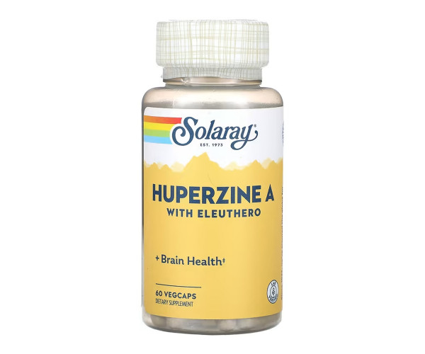 Solaray Huperzine A 50 mcg — is a dietary supplement that contains 50 mcg of huperzine A in each capsule, derived from Chinese club moss (Huperzia serrata). Huperzine A is an acetylcholinesterase inhibitor that helps increase acetylcholine levels in the brain — a neurotransmitter important for memory and cognitive function. This product also contains eleuthero (225 mg) and soy lecithin (75 mg), which may support energy and overall well-being.