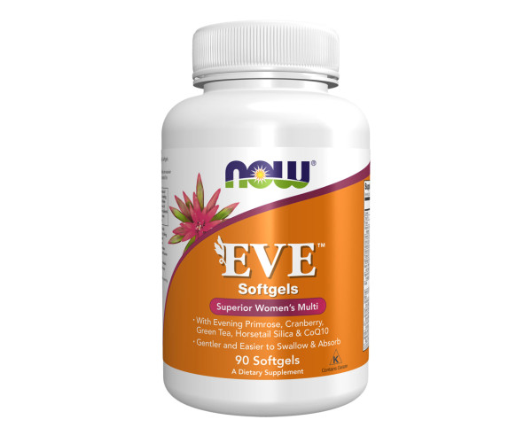 Вітаміни NOW Eve допомагають заповнити нестачу поживних речовин у щоденному раціоні жінок. У сьогоднішньому світі з його стрімким ритмом життя та їжею, що піддається глибокій обробці, багато хто з нас не отримує щоденно рекомендованих доз вітамінів, мінералів та інших поживних речовин. Вітаміни для жінок NOW Eve допомагають заповнити вади раціону, оскільки вони скомбіновані таким чином, щоб забезпечити широкий спектр поживних речовин у синергічній формі.