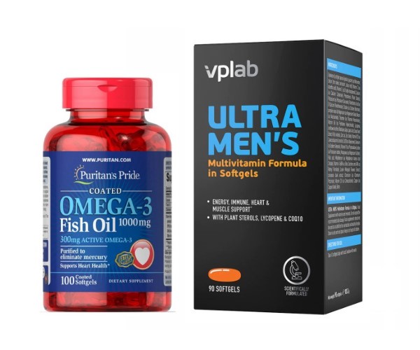Набір "Здоров’я щодня для чоловіків" - Ultra Men's Multivitamin - 90 капсул плюс Omega-3 Fish Oil 1000мг - 100 капсул