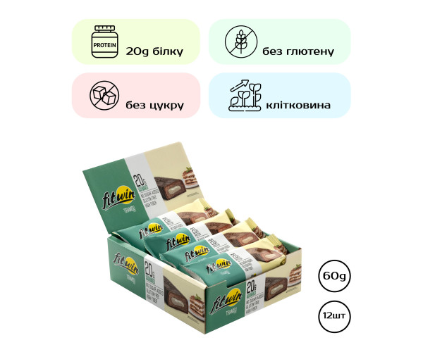 FitWin - це справжнє втілення смаку та користі для вас. З його густою глазур'ю та начинкою всередині, він подарує вам вибух нових відчуттів, забезпечуючи енергію на весь день. Цей 60-грамовий батончик FitWin приносить вам вражаючі 20 грам білка, але при цьому абсолютно без цукру.