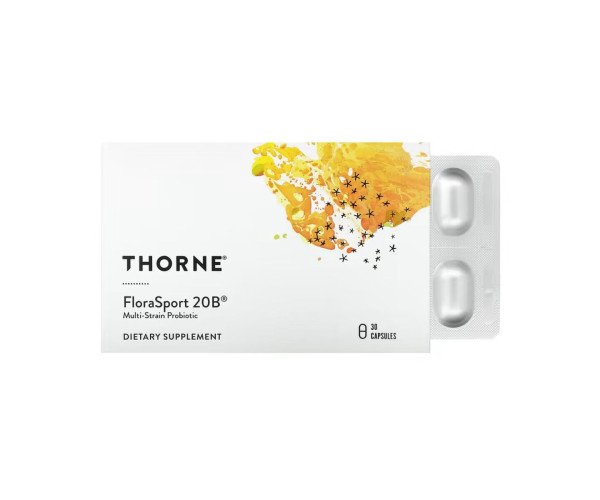 FloraSport 20B — це суміш чотирьох пробіотичних штамів бактерій: лактобактерій параказеї (Lactobacillus paracasei), ацидофільних лактобактерій (L. acidophilus), біфідобактерій лактіс (Bifidobacterium lactis) і бацилус субтиліс (Bacillus subtilis) — у стабільній капсулі з відстроченим вивільненням.