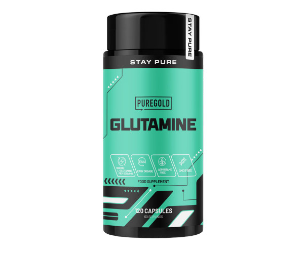 Pure Gold Glutamine – це високоякісна L-глютамінова добавка у зручній капсульній формі, створена для підтримки м’язового відновлення, імунітету та загального тонусу організму. Глютамін є однією з найважливіших амінокислот, яку активно використовують м’язи під час тренувань та відновлення.