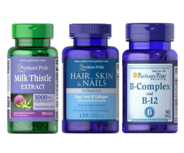 Milk Thistle Extract містить рослинні компоненти, B-Complex поєднує вітаміни групи B, а Hair Skin & Nails Formula доповнює набір колагеном та мікронутрієнтами.