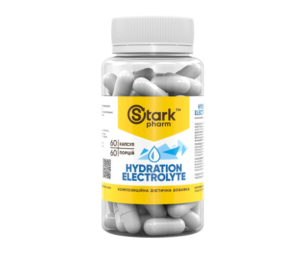 Stark Pharm Hydration Electrolyte - це високоякісний продукт для підтримки водно-електролітного балансу організму. Ці капсули містять збалансовану комбінацію електролітів, які допомагають підтримувати нормальний рівень рідини в організмі, що є важливим аспектом для загального самопочуття. Ідеально підходить для активних людей, спортсменів або тих, хто переживає періоди інтенсивних фізичних навантажень.