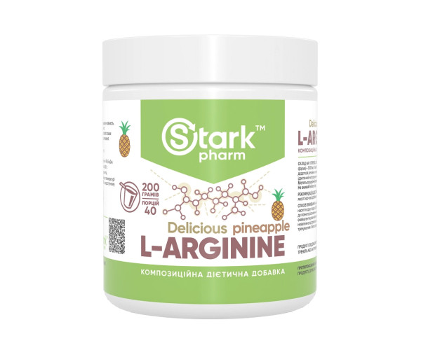 Харчова добавка Stark Pharm – L-Arginine містить L-аргінін у вільній формі, що має широке коло функціонального впливу в організмі. Впливає на підвищення анаболічного відгуку організму - порошок аргініну у вільній формі зі смаком "Маракуйя".