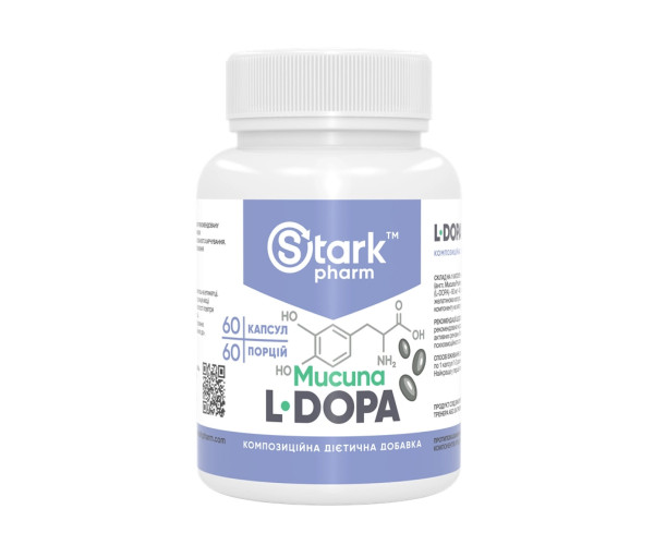 Харчова добавка Stark Pharm - Stark L-Dopa Mucuna – це екстракт мукуни з вмістом речовини L-дофа, яка стимулює вироблення дофаміну в організмі. Дофамін є нейромедіатором, який покращує настрій, пробуджує інтерес до життя. І саме завдяки вмісту 15% L-діоксифенілаланіну добавка забезпечує усім необхідним для його синтезу.