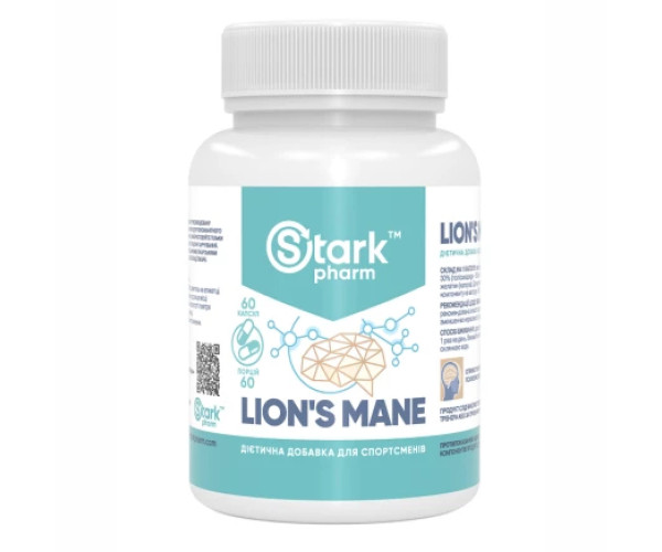 Дієтична добавка Stark Pharm - Stark Lion's Mane містить екстракт лев'ячої гриви, який покращує роботу нервової системи людини.