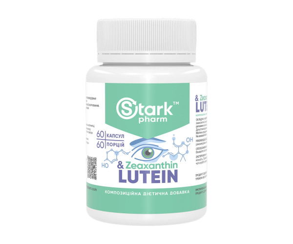Харчова добавка Stark Pharm - Stark Lutein & Zeaxanthin містить лютеїн та зеаксантин, каротиноїди, які є природними пігментами, що сприяють захисту очей від пошкоджень, спричинених впливом вільних радикалів.