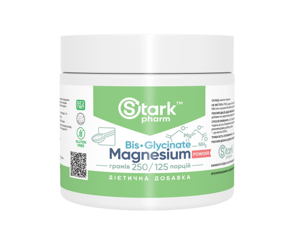Stark Magnesium Bis-Glycinate Powder — це преміальна форма магнію у вигляді бісгліцинату (хелату). Завдяки поєднанню іона магнію з амінокислотою гліцином, цей продукт має найвищий рівень біодоступності. На відміну від звичайних форм, цей мінерал «запакований» так, щоб організм сприймав його як органічну сполуку, що гарантує максимальне поглинання без побічних ефектів для травлення.