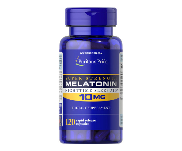 Puritan's Pride® Super Strength Melatonin Nighttime Sleep Aid* 10 мг містить: 120 капсул швидкого вивільнення.