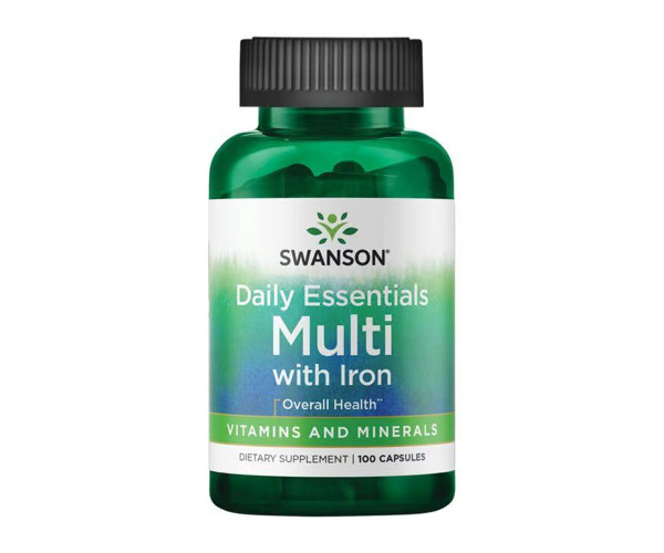 Добавка Daily Essentials Multi із залізом від Swanson — це чудовий спосіб отримати необхідні поживні речовини, необхідні вашому організму. Ця універсальна збалансована формула містить 19 вітамінів і мікроелементів у кожній порції однієї капсули. Містить велику кількість вітаміну A для здоров’я шкіри та зору, вітаміну C для підтримки імунітету, вітамінів групи B для підтримки енергії та нейромедіаторів, а також низку необхідних мікроелементів для гарного самопочуття всього організму.