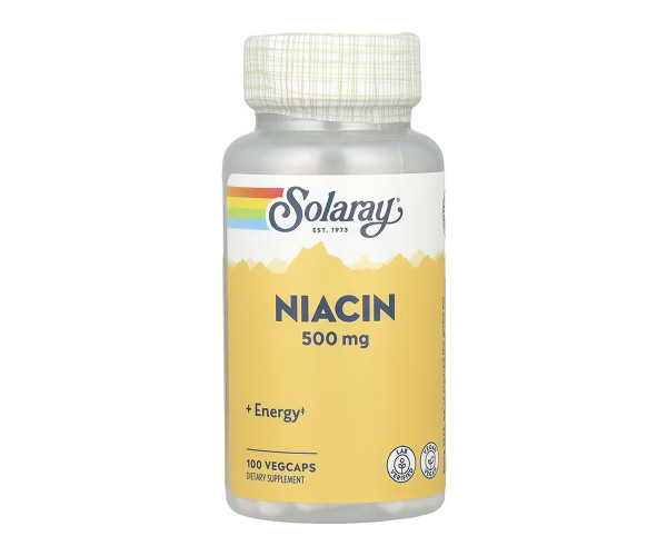 Solaray Niacin 500 мг — це високоякісна добавка, що містить нікотинову кислоту (вітамін B3), стандартизовану для забезпечення оптимальної підтримки енергетичного обміну, здоров'я шкіри та нормального функціонування нервової системи. Кожна капсула містить 100 мг нікотинової кислоти, що становить 625% від рекомендованої добової норми.