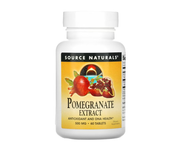 Батьківщиною гранатів є територія між Іраном і північною Індією. Це насичений червоний фрукт, багатий на антиоксиданти. Екстракт граната від Source Naturals містить не менше 400 мг елагової кислоти на порцію. Показано, що вона має вищу антиоксидантну здатність, ніж червоний чай або зелений чай. Попередні дослідження показують, що елагова кислота нейтралізує вільні радикали та підтримує цілісність ДНК і загальне здоров’я клітин.