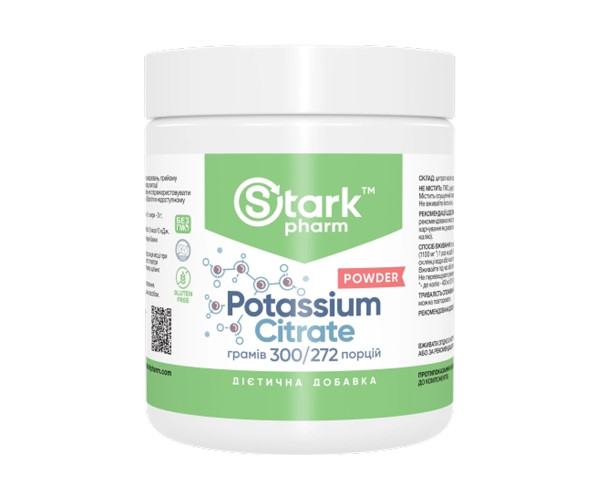 Порошок цитрату калію Stark від українського бренду Stark Pharm – це високоякісна харчова добавка, що містить калій у формі цитрату. Цитратна форма вважається однією з найкращих завдяки високій біодоступності (швидкому засвоєнню) та щадному впливу на шлунково-кишковий тракт.