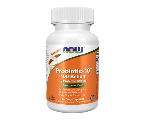 NOW Probiotic-10 пропонує збалансований спектр живих організмів, що складається з кислотостійких пробіотичних бактеріальних штамів, які, як відомо, природним чином колонізують шлунково-кишковий тракт людини. Пробіотичні бактерії життєво важливі для нормального травлення. Вони підтримують цілісність оболонки кишечника, сприяють його нормальній перистальтиці та беруть участь у процесі детоксикації. Ця потужна формула Probiotic-10 містить 100 мільярдів живих організмів, які допомагають відновити здорову флору після періодичних, але тимчасових порушень кишкового балансу.