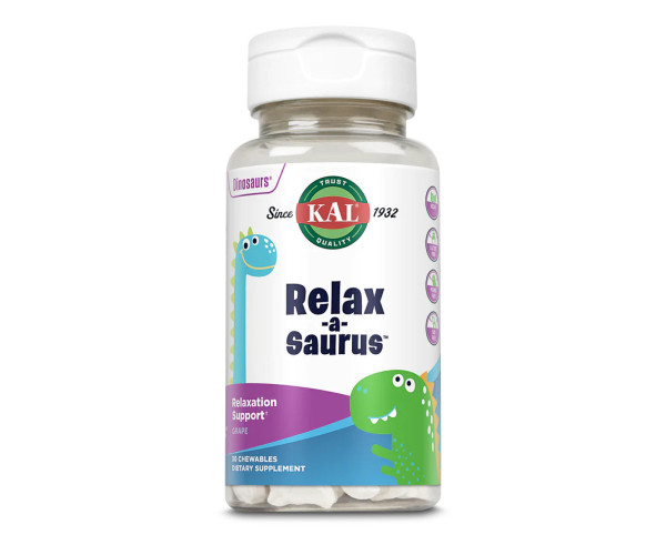У KAL ми віримо, що всі діти заслуговують бути здоровими – фізично та емоційно. Ось чому бренд KAL націлений на надання повного спектру смачних, корисних для здоров’я основних вітамінів, мінералів і спеціальних продуктів, розроблених спеціально для дітей, включаючи Relax-a-Saurus! Наша запатентована релаксаційна суміш містить L-теанін, ромашку, зелений чай і пасифлору, і вона може допомогти забезпечити поживну підтримку для здорового розслаблення та розумової діяльності, одночасно знімаючи випадковий стрес. У той час як діти люблять наші смачні жувальні цукерки у формі динозаврів, виготовлені зі справжнього концентрату виноградного соку, батьки люблять, що жувальні цукерки Relax-a-Saurus підсолоджені ксилітом, тому вони корисні для зубів! Як і всі наші продукти, інгредієнти Relax-a-Saurus пройшли лабораторні випробування на ефективність, чистоту та ідентичність – ви можете довіряти KAL, щоб завжди надавати найкраще.