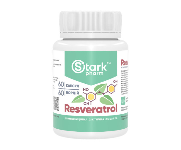 Харчова добавка Stark Pharm - Stark Resveratrol містить ресвератрол у формі транс-ресвератролу, який володіє потужними антиоксидантними властивостями, характеризується підвищеною абсорбцією та стабільністю. Завдяки наявності в складі ресвератролу біоперину (екстракт чорного перцю) та використанню веганських кишковорозчинних капсул для його виробництва біодоступність складає 40-60% на відміну від виробництва добавок ресвератролу в аналогічних капсулах, але без додавання біоперину, біодоступність яких складає лише 1-5%.