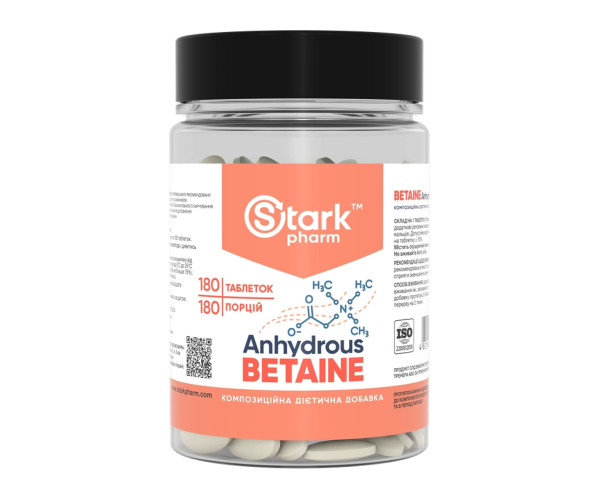 Пищевая добавка Stark Pharm – Stark Betaine Anhydrous содержит безводный бетаин, является органическим соединением, происходящим от аминокислоты глицина. Основная функция бетаина заключается в регуляции уровня гомоцистеина – аминокислоты, чрезмерное накопление которой в организме может привести к повреждению кровеносных сосудов и повысить риск возникновения заболеваний сердечно-сосудистой системы. Бетаин поддерживает функции печени, способствуя процессам детоксикации и расщепления жиров. Бетаин является эффективным средством, которое используется для профилактики и лечения различных заболеваний, связанных с нарушением обмена веществ и функционирования печени.