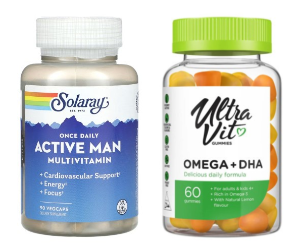 Способ применения: принимать мультивитаминный комплекс по 1 капсуле в день во время еды. Омега-3 — по 2 жевательные пастилки в день.