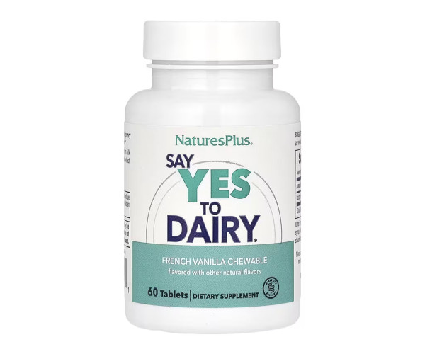Say Yes to Dairy — це дієтична добавка для підтримки травлення, яка зменшує тимчасовий дискомфорт, спричинений непереносимістю лактози, після споживання молочних продуктів. У кожній жувальній таблетці міститься DairyMate® — високоактивний натуральний фермент лактаза зі смаком французької ванілі. Ця унікальна комбінація утворює ефективну й смачну поживну добавку, яка допомагає попередити дискомфорт, як-от газоутворення, здуття й діарею, які часто пов’язують із непереносимістю лактози.