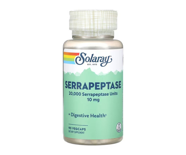 Інформація про продукт. Серрапептаза Solaray® призначена для забезпечення поживної підтримки здоров’я носових пазух. Це протеолітичний фермент не тваринного походження, отриманий шляхом контрольованої ферментації бактеріального штаму Serratia spp. Кожна капсула вкрита кишковорозчинною оболонкою, що допомагає їй витримати вплив шлункового соку та проникнути в тонкий кишечник.