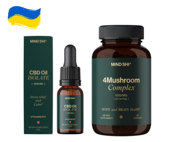 Набір "Гармонія та відновлення" - CBD Oil Isolate 1000 mg Strawberry - 10 ml ПЛЮС 4Mushroom Complex 1000 mg - 60 vegcaps
