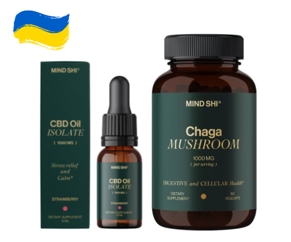 Набір "Баланс та захист організму" - CBD Oil Isolate 1000 mg Strawberry - Chaga Mushroom 1000 mg - 60 vegcaps