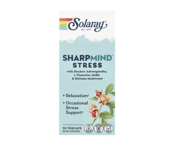 Ноотропна формула Solaray SharpMind™ для боротьби зі стресом, розроблена для підтримки стану при епізодичному стресі та заспокоєння розуму.