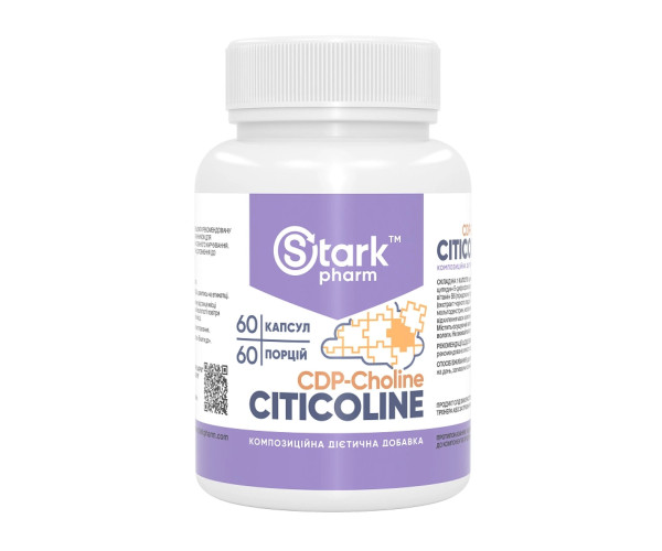 Харчова добавка Stark Pharm Citicoline (цитиколін, когніцин, CDP-холін) це ноотроп, проміжне з'єднання в утворенні фосфатидилхоліну з холіну. Дослідження показують, що препарат підвищує щільність дофамінових та ацетилхолінових рецепторів, і передбачається, що він здатний запобігати погіршенню пам'яті внаслідок негативних умов довкілля. За попередніми даними, добавки цитиколіну допомагають покращити увагу та розумову енергію, що може бути корисним при лікуванні синдрому дефіциту уваги та гіперактивності. Також було виявлено вплив на рівень АКТГ та інших гормонів передньої частки гіпофізу (це може бути корисним для деяких людей, але не виключено небажаних наслідків при захворюваннях, пов'язаних з гіперсекрецією АКТГ та кортизолу). Також показаний при органічному пошкодженні мозку, оскільки він впливає на нейропептиди.