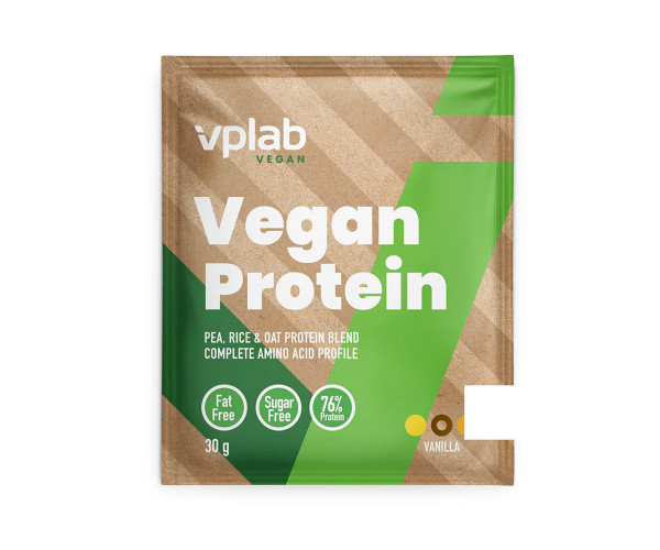 VPLab Vegan Protein — це суміш 3 білкових веганських інгредієнтів: ізолят горохового протеїну, порошок вівса, порошок рису.