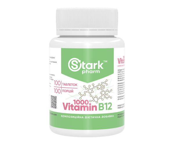 Харчова добавка Stark Pharm - Stark Vitamin B12 містить 1000 мкг (1 мг) вітаміну B12 у преміальній та найбільш біодоступній формі - метилкобаламіні.