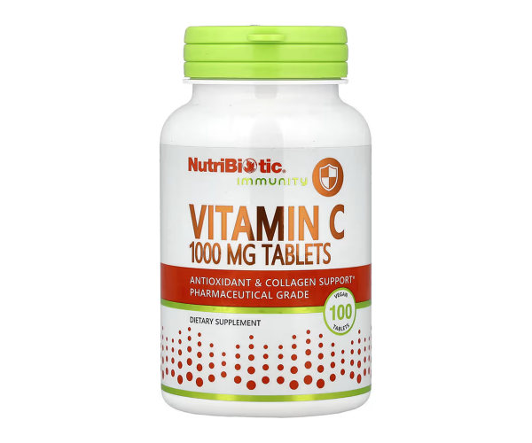 Таблетки NutriBiotic® Вітамін С 1000 мг містять 100% вітамін С (L-аскорбінову кислоту) фармацевтичного класу. Вітамін С, необхідна поживна речовина для організму, забезпечує антиоксидантний захист імунної системи, а також підтримує здоров'я кровоносних судин, тканин, хрящів, кісток, очей та інших систем органів. Вітамін С також необхідний для біосинтезу колагену, L-карнітину та нейромедіаторів. Поєднаний позитивний вплив вітаміну С робить його життєво важливим для загального здоров'я організму.
