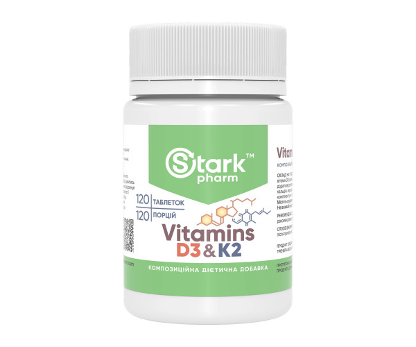 Харчова добавка Stark Pharm - Stark Vitamins D3 & K2 поєднує в собі два ключові жиророзчинні вітаміни, необхідні для здоров'я кісток, серця та імунної системи.