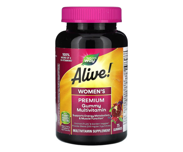 ‡ Містить більше тіаміну (0,6 мг замість 0,3 мг), ніацину (8 мг замість 4 мг), ніж жувальні таблетки для жінок Alive!® зі стандартним складом (15903).