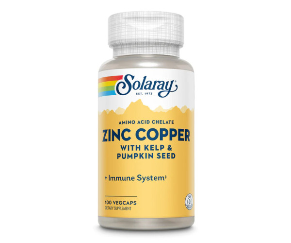 Solaray Zinc Copper — це збалансована добавка, яка забезпечує ваш організм необхідними мікроелементами: цинком і міддю, а також містить екстракти бурих водоростей (Келп) та насіння гарбуза. Ці інгредієнти відіграють важливу роль у підтримці загального здоров'я, і їх правильне співвідношення має вирішальне значення для оптимального функціонування організму.